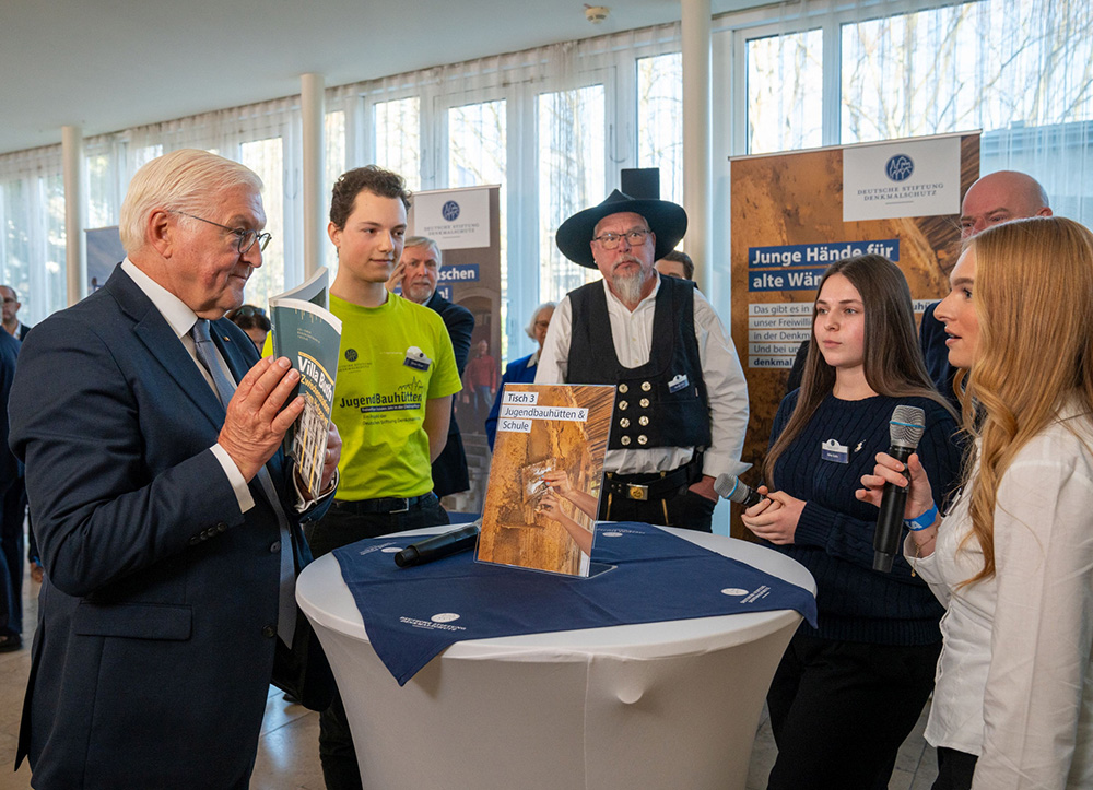 Wie wertvoll Denkmale damit für die Gesellschaft sind, ist besonders für die kommende Generation wichtig zu erfahren - denn sie ist es, die schon bald den Umgang mit historischen Bauwerken prägen wird. Zwei Schülerinnen des Heilig-Geist-Gymnasiums Würselen konnten dem Bundespräsidenten bei seinem Besuch vom beispielhaften Einsatz junger Menschen für ein Denkmal in ihrer Region berichten: der langjährigen Projektarbeit für den Erinnerungsort Villa Buth in Jülich-Kirchberg.