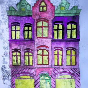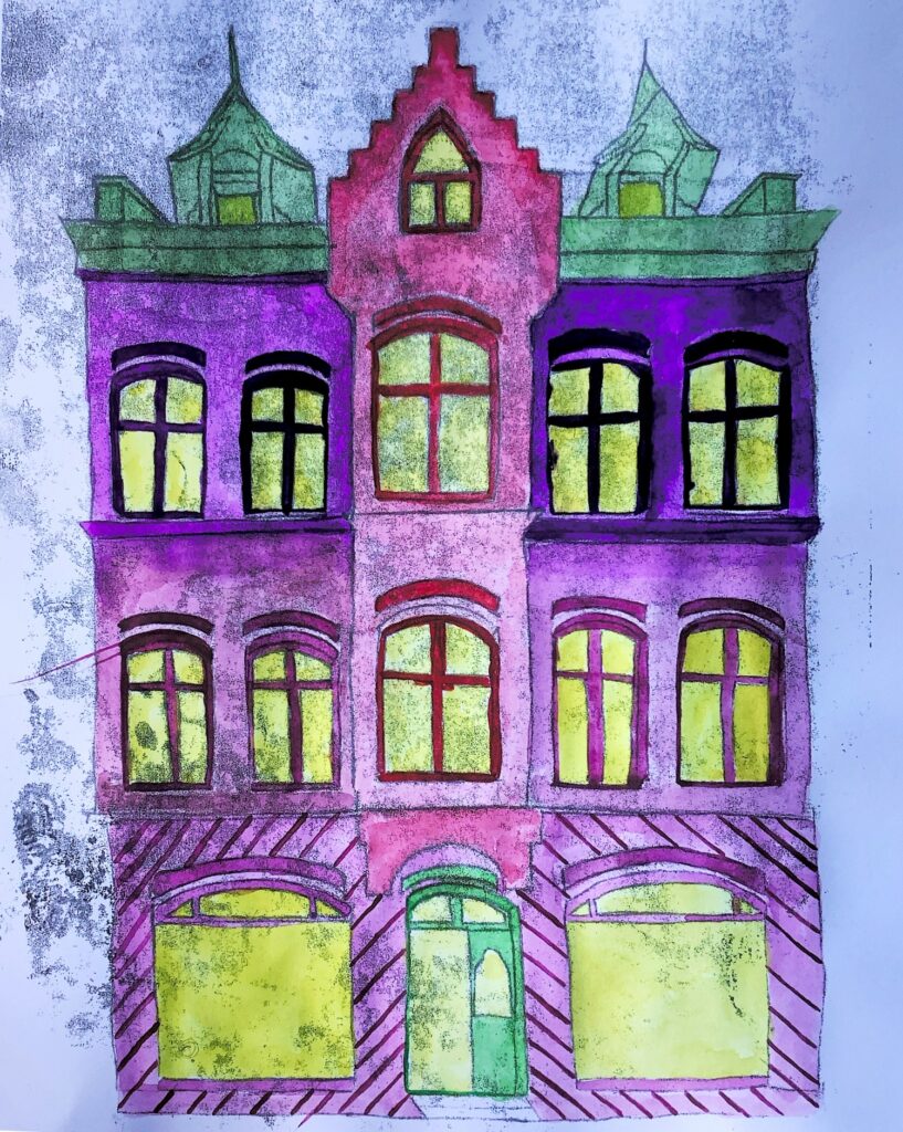 Eine kolorierte Monotypie des Vorderhauses des Caspar-David-Friedrich-Zentrums ...