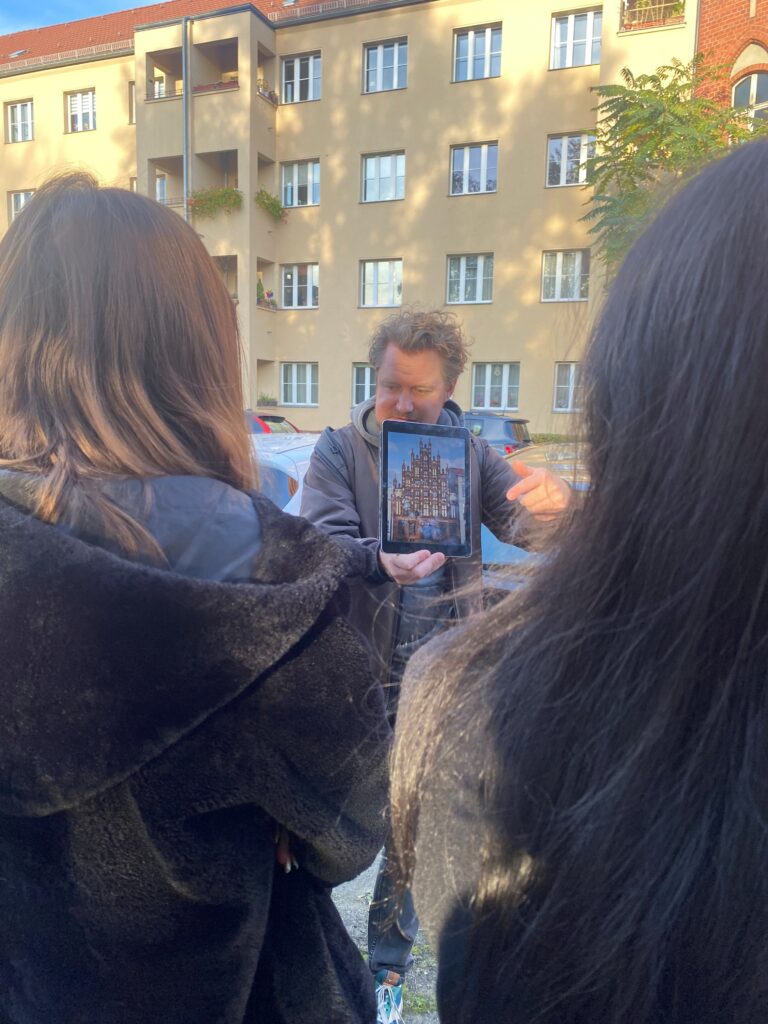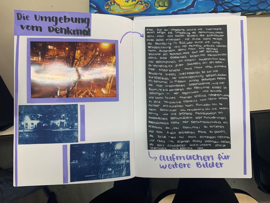 „Bei den Denkmal­be­ge­hun­gen im Ortsteil Pankow haben die Lernen­den erfah­ren, dass Denkmale im öffent­li­chen Raum häufig überse­hen oder selbst­ver­ständ­lich wahrge­nom­men werden. Die Exkur­sio­nen verdeut­lich­ten, dass Denkmale keine stati­schen Objekte sind, sondern in einem Spannungs­ver­hält­nis zwischen histo­ri­scher Bedeu­tung und gegen­wär­ti­ger Wahrneh­mung stehen. Beson­ders bedeut­sam ist die Erkennt­nis, dass Denkmale immer Ausdruck ihrer Entste­hungs­zeit sind und politi­sche, gesell­schaft­li­che oder ideolo­gi­sche Inter­es­sen wider­spie­geln. Auch das Wissen um Materia­li­tät, Symbo­lik und ikono­gra­fi­sche Codes wurde vertieft.“