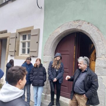 Jüdisches Leben in der Rothenburger Judengasse und im Besonderen das dortige Haus Nummer 10 stehen in diesem Projekt im Fokus. Mit Unterstützung des Vereins Kulturerbe Bayern, der das Objekt erworben und in den letzten Jahren saniert hat, erschließen sich die Schülerinnen und Schüler das Baudenkmal als Lernort. Die schulische Filmgruppe hat bereits einen zehnminütigen Dokumentarfilm zum Haus erstellt. Nun erarbeitet das Projektteam in Gruppen Informationen zu verschiedenen Themenbereichen wie dem Judentum und seinen Bräuchen (Ausgangspunkt: die Mikwe im Keller des Hauses), dem Leben in Rothenburg im Mittelalter (Ausgangspunkt: die Bohlenstube im ersten Stock) sowie zur mittelalterlichen Architektur und Herausforderungen ihres Erhalts (Ausgangspunkt: das Dachwerk des Hauses). Zu diesem Zweck erhalten die Schülerinnen und Schüler von vielen verschiedenen außerschulischen Experten Informationen rund um das bedeutsame Bauwerk. Im Anschluss daran sollen die Siebtklässler selbst zu „Denkmaldetektiven“ werden, die an einem Projekttag im Sommer 2026 eine örtliche Grundschule durch das Gebäude führen können. In diesem Sinne entwickeln sie in ihren jeweiligen Bereichen Materialien für eine Kinderführung, die im Idealfall bei späteren Führungen genutzt werden können.