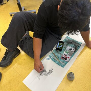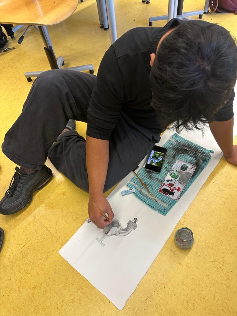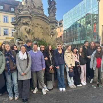 Eine 9. Klasse der Höchberger Schule setzt sich in ihrem Projekt mit einem der großartigen barocken Brunnen Würzburgs auseinander, dem Vierröhrenbrunnen. Er lädt mit seinem Figurenprogramm zu Entdeckungsreisen ein: Vier Delphine speien Wasser, über ihnen thronen die Kardinaltugenden Weisheit, Mäßigung, Gerechtigkeit und Stärke. Was haben sie mit Würzburg und mit Franken zu tun? Die Lernenden tauchen tief in die Stadtgeschichte und auch in die Geschichte der städtischen Wasserversorgung ein. Sie erkunden den Brunnen bei Exkursionen vor Ort, studieren die Originalfiguren, aber auch grafische Dokumente im Museum für Franken. Die Klasse analysiert literarische Quellen, befragt Fachleute und hält die Brunnenskulpturen zeichnerisch sowie druckgrafisch fest. Ergänzend entstehen Ausstellungstexte sowie kurze digitale Präsentationen, die über den Vierröhrenbrunnen informieren und das Projekt nachhaltig dokumentieren.